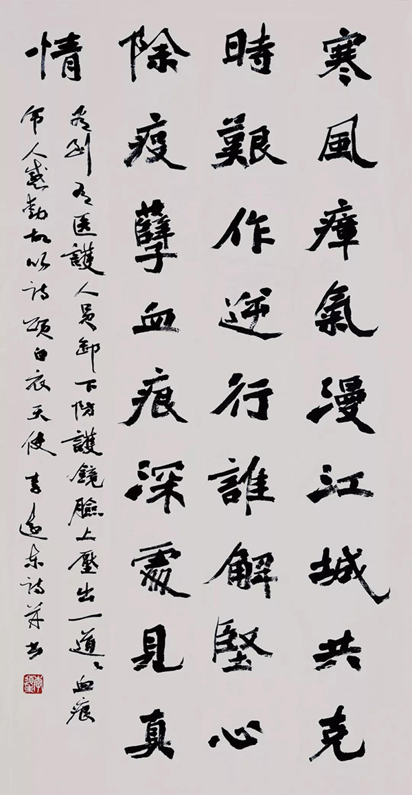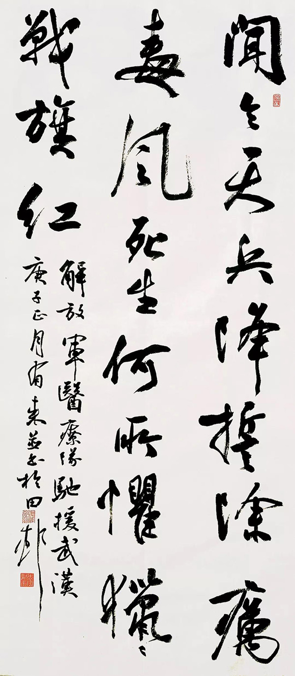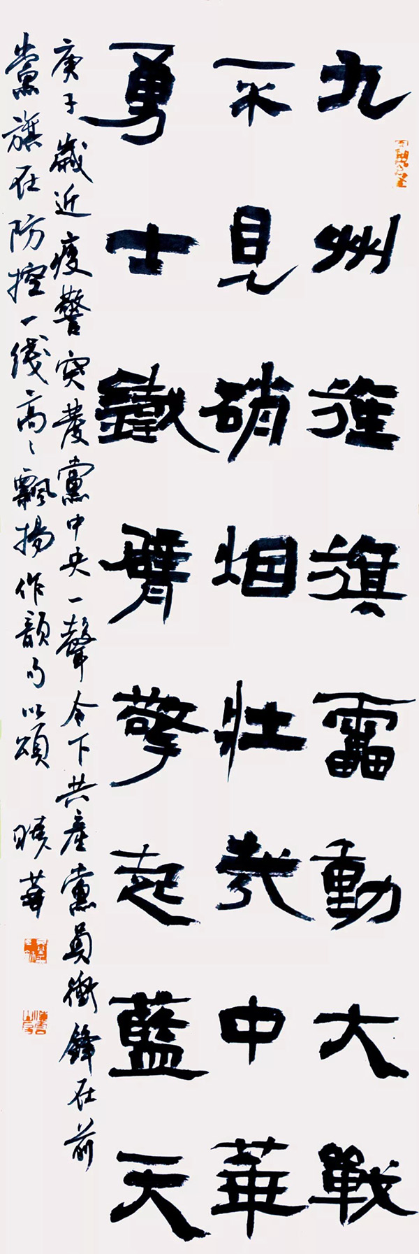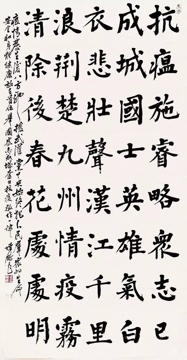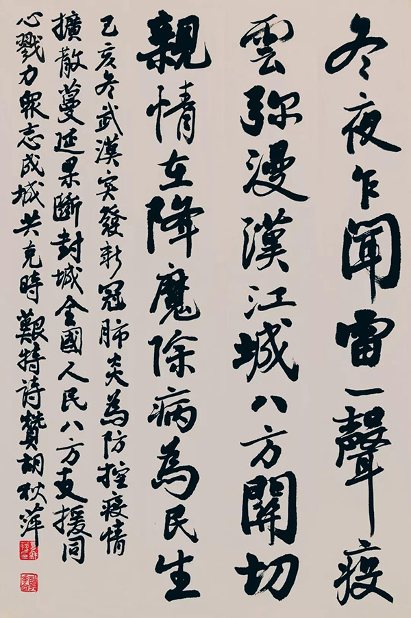 己亥冬,武汉突发新冠肺炎,为防控疫情扩散蔓延,果断封城。全国人民八方支援,同心戮力,众志成城,共克时艰。特诗赞,胡秋萍。