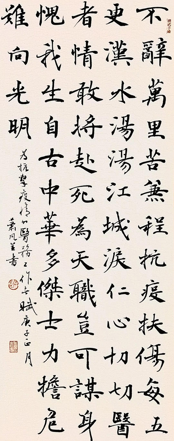己亥末,新冠病疫肆虐。初以武汉告急,旋又波及诸省。党中央发出号令,全国人民奋起响应。危急关头,共产党员乃见其本色。右录上海华山医院支书张文宏文语也。黄君并记。
