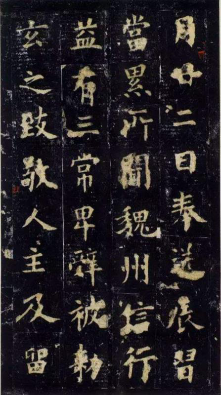 欧阳询楷书书髓为北派,可为不争事实。而求其所自出,则窦臮《述书赋》载有“若乃出自三公,一家面首,欧阳在焉”语可循。三公者谁,北齐刘珉也,尝为北齐三公郎中,是窦氏言欧书出于刘珉也。《宣和书谱》称:“书法自王氏羲献父子以来,其道浸以衰陋,至齐尤甚。珉善草隶,远追羲之,颇得其法,落笔佳处,往往凌轹古人,至作草书益胜,乃复名世。……且珉独能撮起一时末习之学,以至于此,遂有齐一代名书之流,得不宜哉!”凌轹古人,高蹈时流,刘珉书艺的超凡不俗,大略可推。又李嗣真《书后品》状其书法为“比颠波赴壑,狂涧争流”,波翻浪覆,万壑争流,珉书的壮观佳妙,益可以想见。珉之书迹,真楷书未见载籍,但知有草书十二纸传世耳。此十二纸,中唐时犹存,到了宋初,则只存《乘晚帖》一纸,宋以后,就此一纸也零落烟消,永成绝响。《述书赋》或载:珉书“萧条北齐,浩瀚仲宝。劣克凡正,备法紧草。遐师右军,欻尔繇道。究千变而得一,乘薄俗而居老。如海岳高深,青分孤岛。”“海岳高深,青分孤岛”,与李嗣真的“比颠波赴壑,狂涧争流”,所状有同工之妙,但味去好象都是在比状草书。窦、李二氏皆唐代人,难道在二人著作之时,珉之隶楷书法便已经不可见耶?窦氏与欧阳询的生活时间相隔仅止百年,于欧氏书法之师承脉络,一定很清楚了然,说欧书出于刘珉,应当不为虚语。徐浩《古迹记》记窦臮“久游翰苑,皆好图书。辨伪知真,无出其右”,如此一位饱学之士及鉴赏大家,修品自高,言之所出,必有所据。况乃窦氏尝自认刘珉为其“外五代祖”,世岂有自诬其祖之理耶?