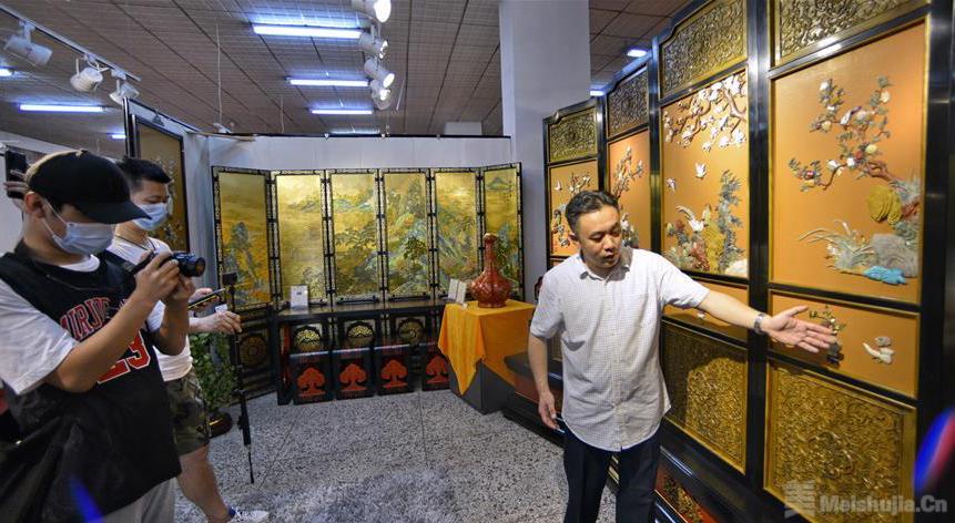 当日,国家级非物质文化遗产项目保护单位北京金漆镶嵌有限责任公司在北京金漆镶嵌艺术馆举办了金漆镶嵌漆艺精品展览,展览首次展出了大型艺术屏风《春意盎然》等百余件新创作的金漆镶嵌艺术精品。这些艺术精品涵盖了镶嵌、彩绘、雕填、刻灰、断纹等众多工艺门类,展示了中华优秀传统文化的魅力。