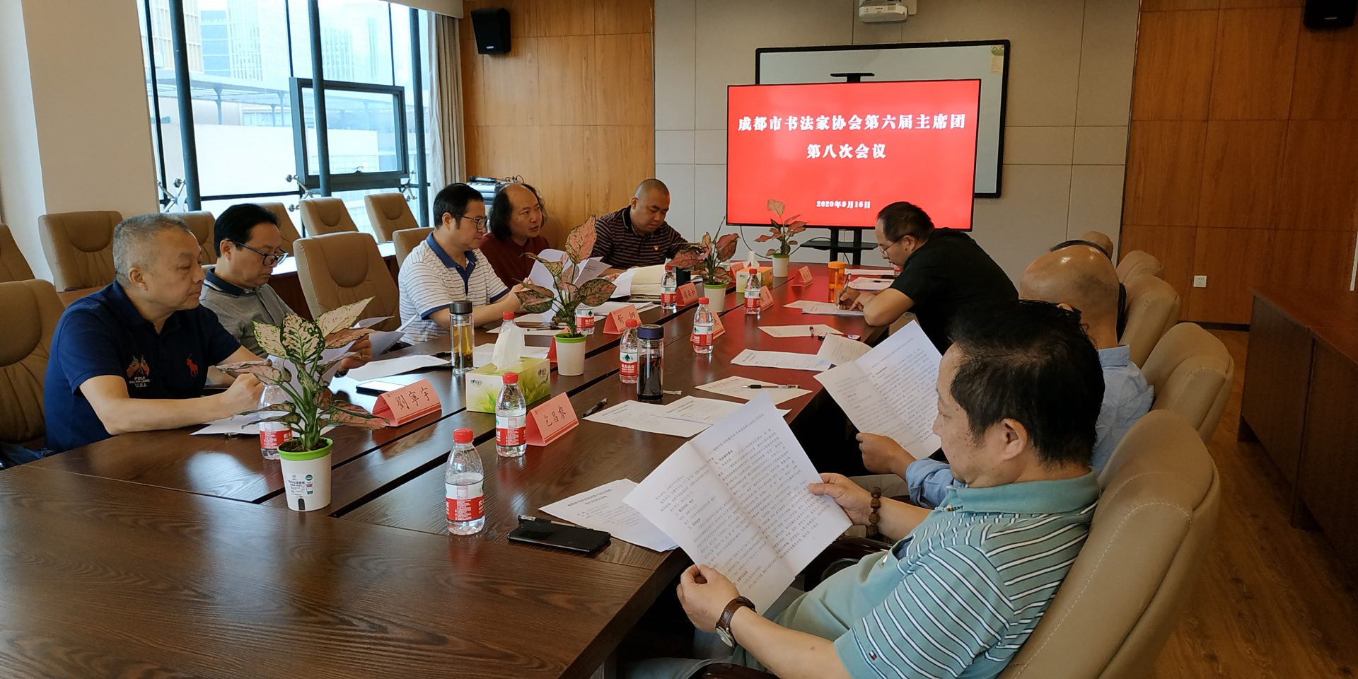 2020年9月16日上午,成都市书法家协会第六届主席团第八次会议暨中共成都市文学艺术界联合会成都市书法家协会支部委员会联席会议在成都市文联党员活动室召开,参会者集体学习了习近平总书记在科学家座谈会上的讲话精神。