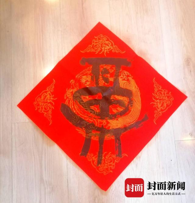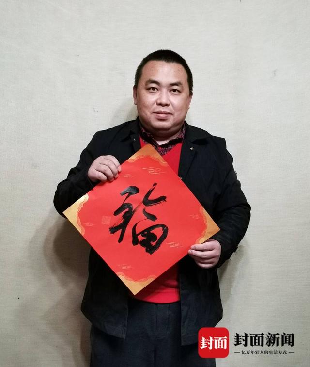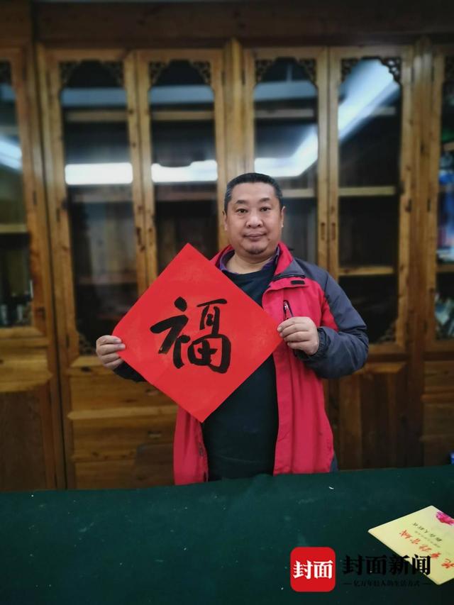 百幅福字全部由书法家们亲手书写,有行草真隶等多种字体,在诸多福字作品中,封面新闻记者“活捉”一个外型萌萌哒的“福字”。它并非常见的左右结构,而是上下结构,上面的“一口田”像口锅,下面像是一个灶台,又像是锅架。这个“火锅福字”是大篆书体,出自书法家刘崇寿(沛然)之手。他不仅是成都市书法家协会副秘书长,同时还是蜀都书画院副秘书长、二酉山房理事,更让人叫绝的是,刘崇寿老师还是位“功夫高手”,他是陈式太极拳十三代传人、中国武术六段。