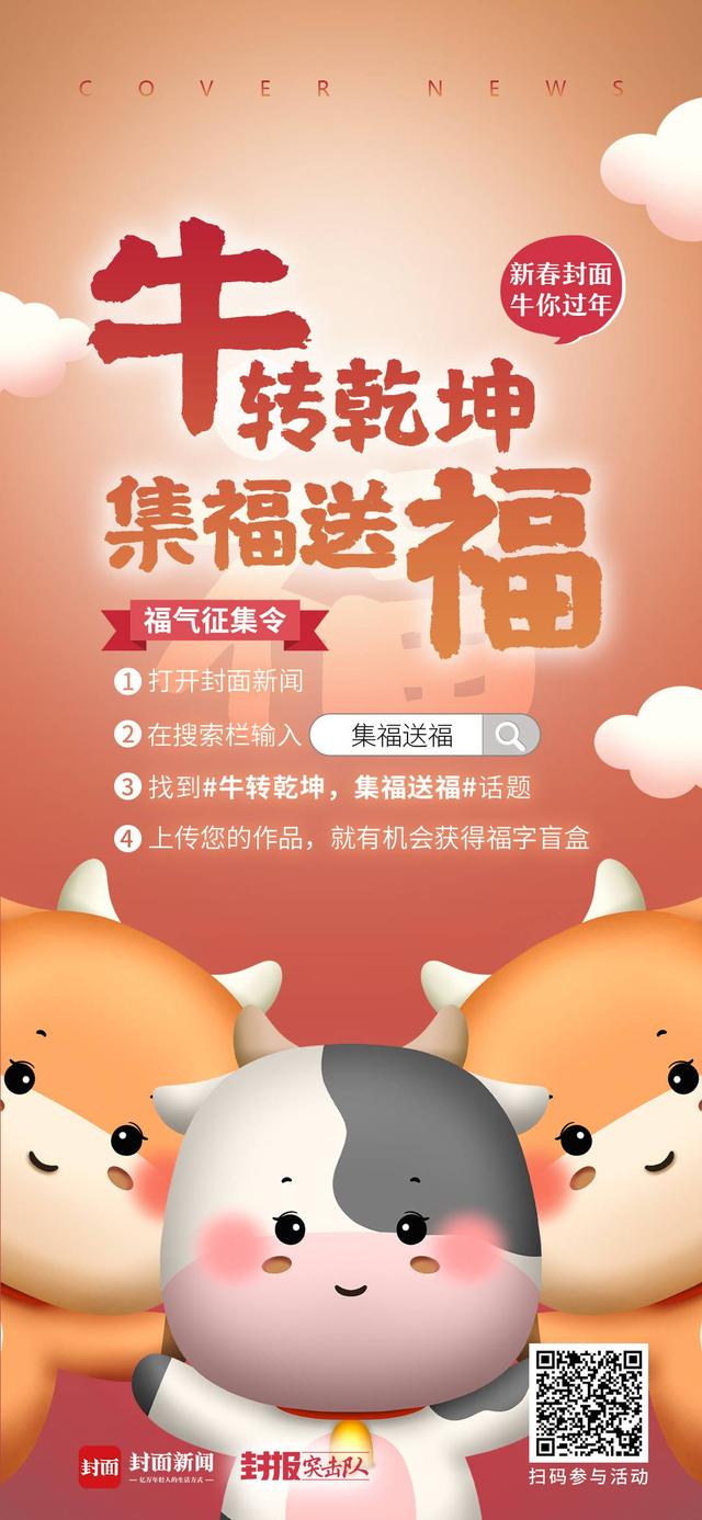近日,封面新闻、华西都市报向各位网友发出《萌牛通缉令》和《福字征集令》,只要发送您拍的和牛有关的照片,画的和牛有关画作,以及您写的福字发给我们,就有机会抽中成都市书法家协会著名书法家创作的福字“盲盒”。2月3日,五位书法名家赠送给封面网友的百幅“福字”已安排好。2月8日后,封面新闻将会陆续通知中奖的各位亲,每位获奖者都能领取一幅“福字”真迹。