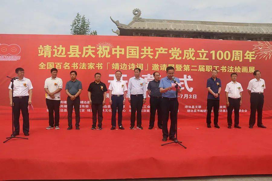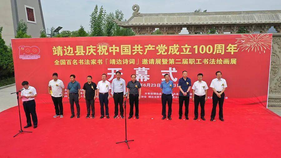 值此中国共产党成立100周年之际,靖边县以书画为名为祖国献上一份文化大礼,经过两个多月的筹备,靖边县庆祝中国共产党成立100周年全国百名书法家书“靖边诗词”邀请展暨第二届职工书法绘画展于6月23日在龙图书院隆重开幕。县委常委、副县长刘波,县委常委、宣传部部长白银喜,县委常委任利戈,县人大常委会副主任高升,县政府党组成员王晨,县政协专职常委杨连军,县委统战部副部长许玉娟,县文联党组书记王世玺,县文旅局党组书记、局长林泽,县原政协主席、县书法家协会主席贺启鹏和中国书法家协会会员、河南省驻马店市政协常委、市总工会职工书协主席聂政等领导参加了开幕式。