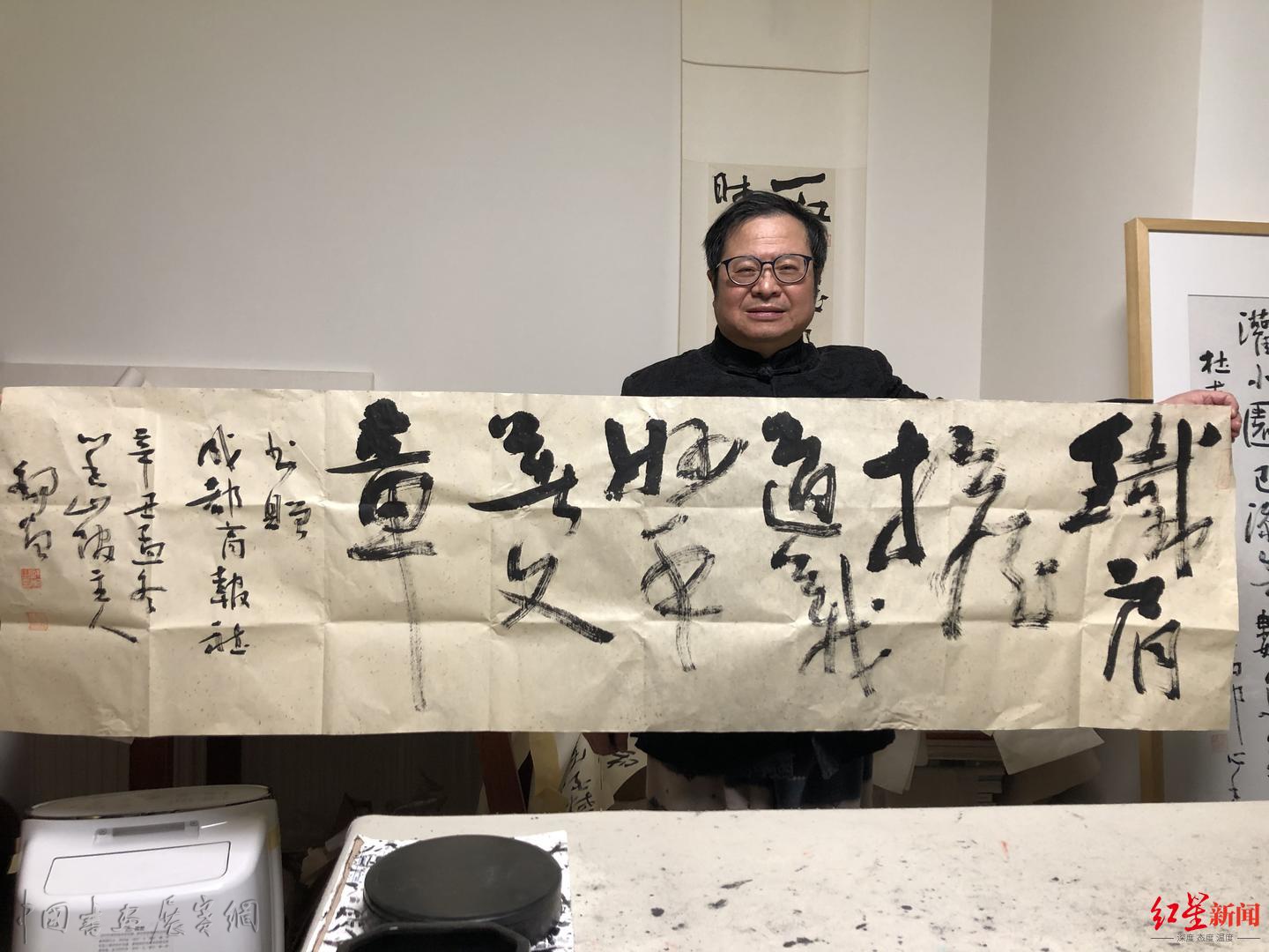 今天(11月8日)是记者节,成都市书法家协会主席、著名书法家舒炯为成都商报社题写了一幅书法作品:“铁肩担道义,妙手著文章。”