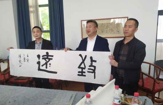 双方表示在今后要多走动多交流,相互促进协会发展和书家进步。金堂县政协主席、副县长、文化局局长、文化馆馆长到场指导并与各位书法家合影留念。