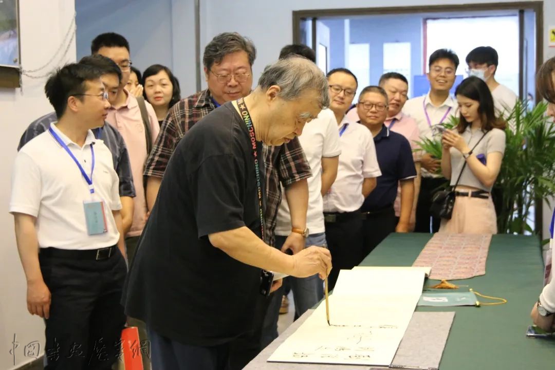 校领导与各高校参会代表在西华师范大学书法学院书法篆刻艺术馆参观首届四川省高校书法学专业教学成果展