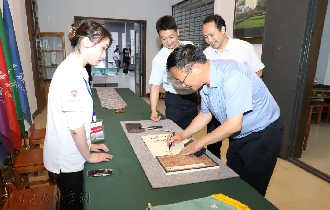 西华师范大学党委副书记王元君校长与书法学院刘清杨院长对展会等情况进行交流