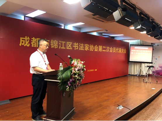 锦江区书法家协会第二届理事会主席程峰代表当选理事会讲话之后,成都市书法家协会主席舒炯先生、锦江区委宣传部副部长、锦江区文联负责人赵怡分别向大会及新当选理事会、监事会致贺辞。