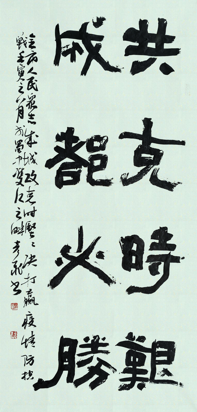 2022年9月1日,成都市文学艺术界联合会发布《致全市文艺工作者的倡议书》指出:当前我市疫情防控形势异常复杂严峻,抗疫斗争进入紧要关头。为坚决遏制疫情扩散,广大文艺工作者要以实际行动坚决支持和落实市委、市政府疫情防控工作部署要求,为全力打赢疫情防控攻坚战贡献文艺力量。成都书法界积极响应,踊跃创作主题书法作品,凝聚起团结抗疫、共克时艰的强大力量,展现了新时代书法工作者的责任担当。
