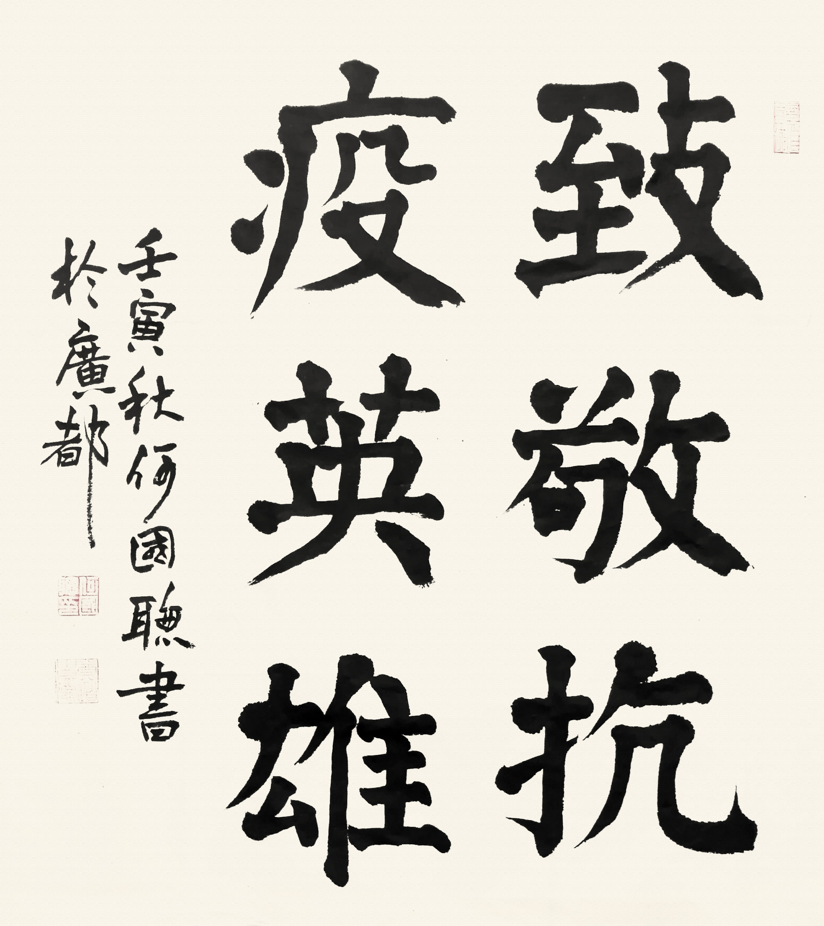 2022年9月1日,成都市文学艺术界联合会发布《致全市文艺工作者的倡议书》指出:当前我市疫情防控形势异常复杂严峻,抗疫斗争进入紧要关头。为坚决遏制疫情扩散,广大文艺工作者要以实际行动坚决支持和落实市委、市政府疫情防控工作部署要求,为全力打赢疫情防控攻坚战贡献文艺力量。成都书法界积极响应,踊跃创作主题书法作品,凝聚起团结抗疫、共克时艰的强大力量,展现了新时代书法工作者的责任担当。