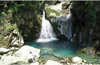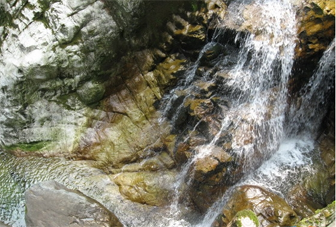 由浴仙沱举步登山,或疾或徐,或行或驻,或放或蹑,拂枝取径,跨桥渡栈,逾“白龙”、“情人”、“幻景”诸沱,而后青牛沱至焉。沱有巨石,宛如牛首浮卧其间,石白而泛青,青牛之得名,当据此乎?牛嘴前展,直欲伸人“幻景沱”中。其犄角开张约数丈,势大气雄,斩水劈流,望之愕然。有水如注,从其鼻中淌出,汩汩淙淙、谛之弥响。其目圆睁若铎,仰视苍空,似欲尽观其风雨雪霓、日月星云之变化也。沱上岩壁,棱棱脊脊,屈屈活脱如牛身,仿佛呼之欲起,鞭之欲行也。或谓往古之时,洪水横流,泛滥于天下,禹治之焉。《传》云:“美哉!禹功!明德远矣。微禹,吾其鱼乎!”由是,知禹之德泽远矣,禹之功劳巨矣,故世代怀之。或又谓,禹治水之初始也,有青牛助之,劬劳竭力。洪水既息,天下安然,青牛遂化石藏匿山水中,永遁其迹。乡人告之曰:“即此牛也。”余揖而长拜之,祝祷云;“愿苍天佑彼,永享清适。”