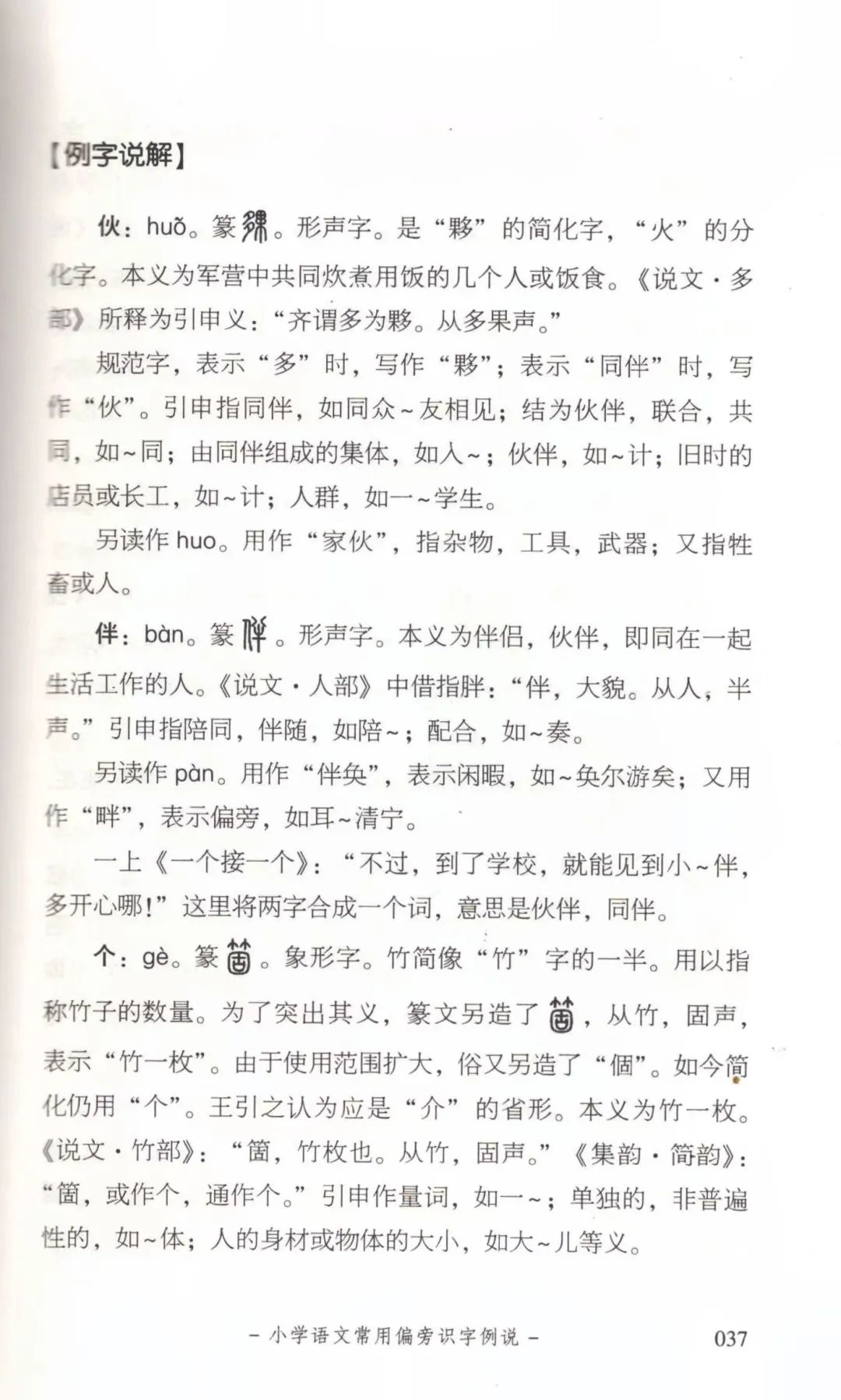 总述自2019年版“教育部审定义务教育小学语文教科书”1-5年级教材中,分隶于各偏旁之下的汉字;同一偏旁简单分类,对易于理解的汉字进行归类总写。