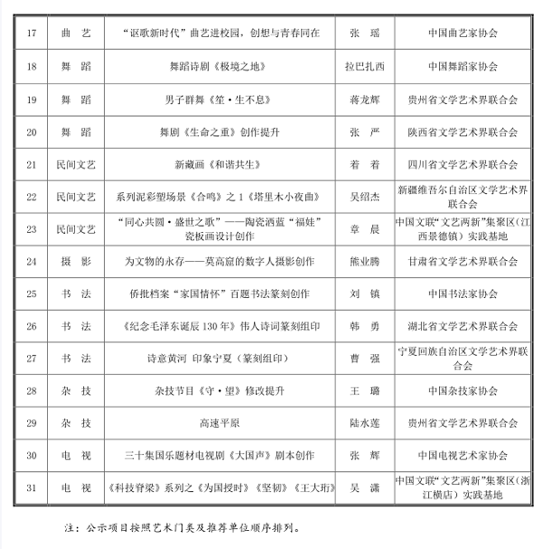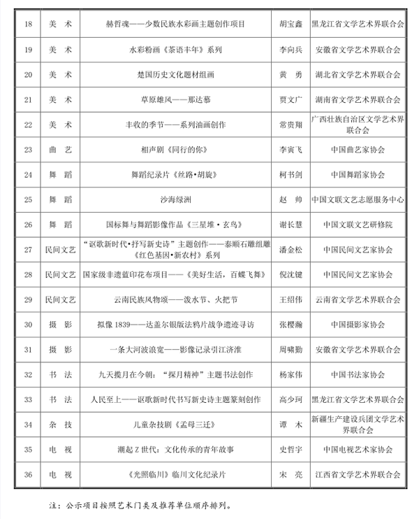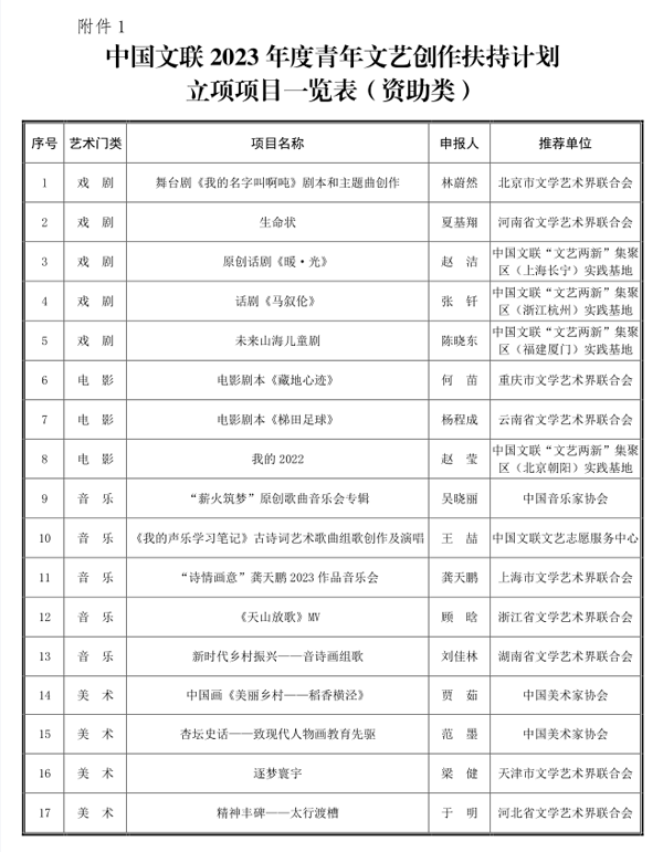 1.中国文联2023年度青年文艺创作扶持计划立项项目一览表(资助类)