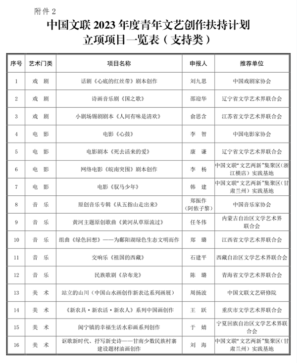 2.中国文联2023年度青年文艺创作扶持计划立项项目一览表(支持类)