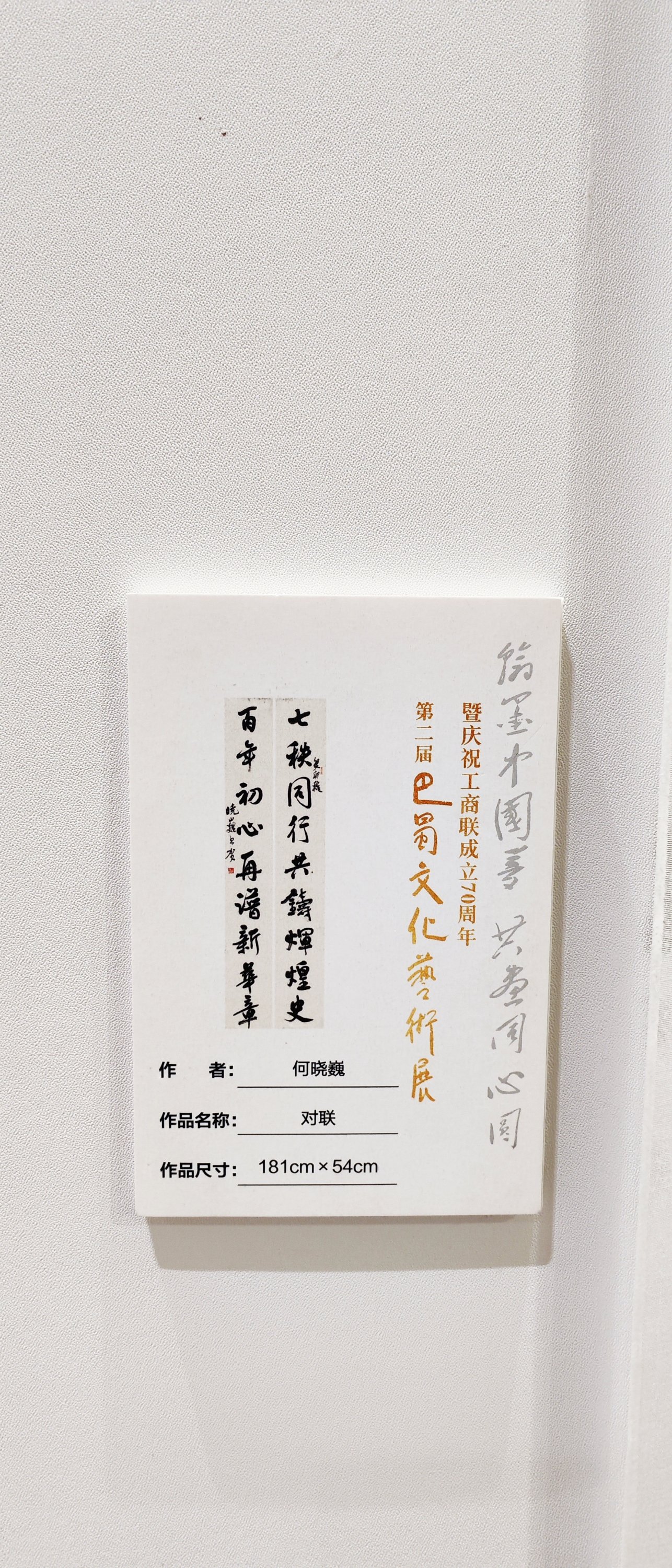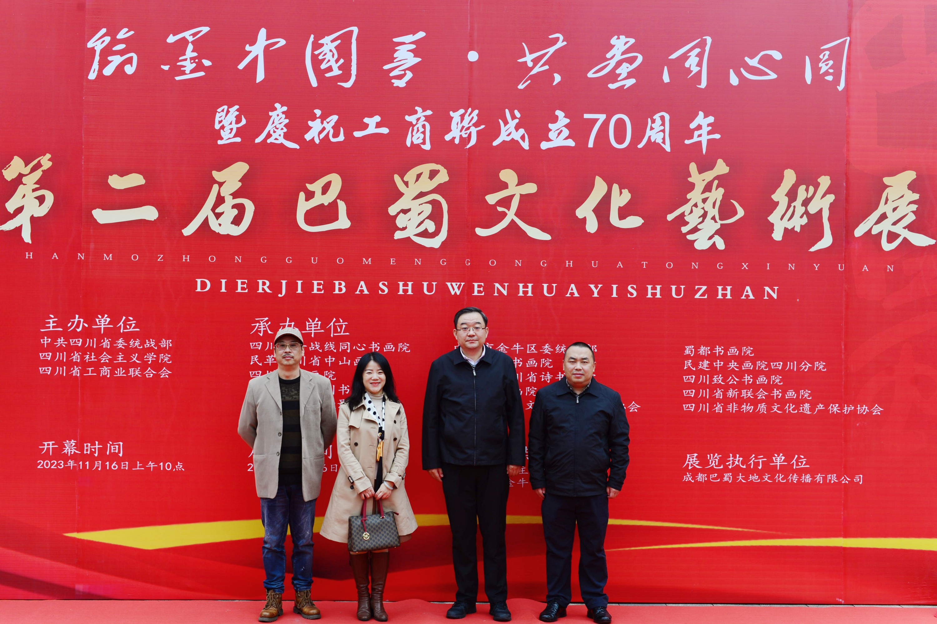 2023年11月16日,在庆祝工商联成立70周年的重要时刻,第二届巴蜀文化艺术展在成都隆重开幕。本次展览以“翰墨中国梦 共画同心圆”为主题,旨在通过艺术的形式,展示巴蜀文化的魅力和工商联的辉煌历程。