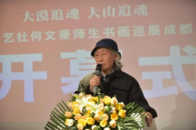 第一项、达州师范学校原校长唐恩厚致辞。唐恩厚校长对何文豪先生大漠、巴山绘画题材作品给予了高度评价,介绍了何文豪先生在达州师范学校任教期间,在人才培养、艺术创作等方面做出的杰出贡献。