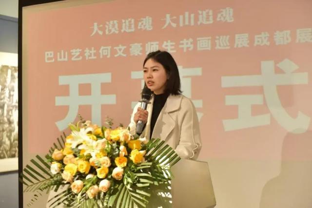 2023年12月23日下午两点,由四川大学书法研究所、新疆建设兵团美术家协会、成都市书法家协会、达州市通川区文学艺术界联合会主办,成都诗婢家美术馆、巴山艺社、石河子大学文艺学院、四川文理学院美术学院、达州市美术家协会、万源市书法家协会承办,成都财智光华培训学校、成都川音美文化艺术培训学校、山西晋中爱家装饰工程有限公司协办的“大漠追魂、大山追魂——巴山艺社何文豪师生书画巡展”在成都诗婢家美术馆隆重开幕。